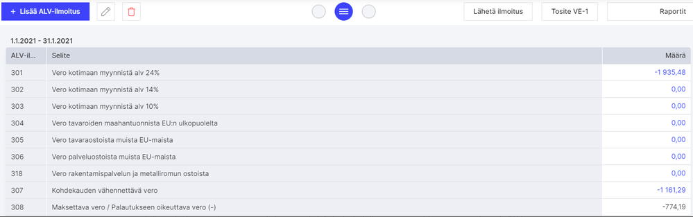 Lisää uusi alv-ilmoitus painikkeesta +Lisää ALV-ilmoitus.