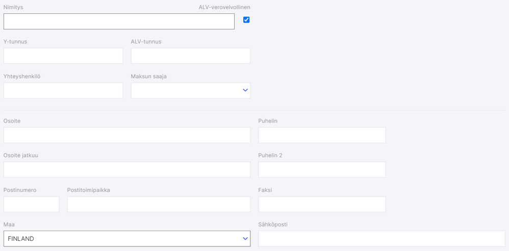 Kentät Y-tunnus ja ALV-nro on myös hyvä täyttää.