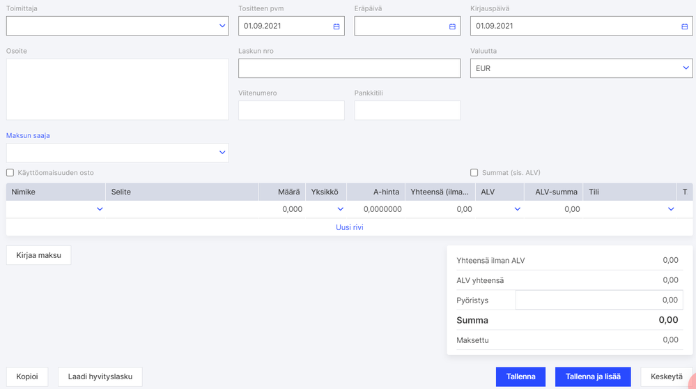 Lisää ostolasku painamalla Lisää ostolasku.