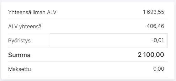 Ostolaskun kentässä Pyöristys voidaan pyöristää laskun loppusummaa tasalukuun.