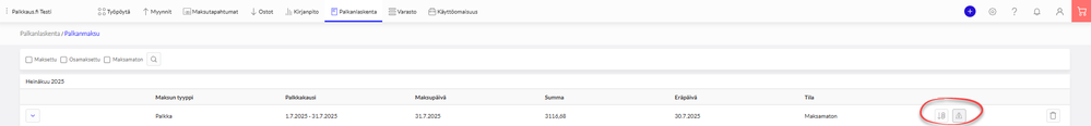 Kun tarvittavat tiedot palkkalaskelmaa varten on täytetty, voit aloittaa palkan maksamisen vaiheet. Klikkaa ensin Maksa.
