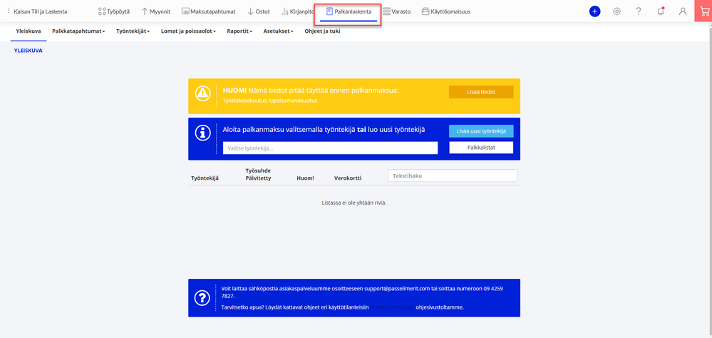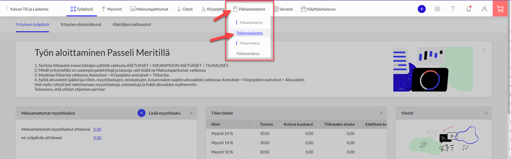 3. Siirry Passeli Meritiin ja aloita käyttö Palkanlaskenta-osiossa
