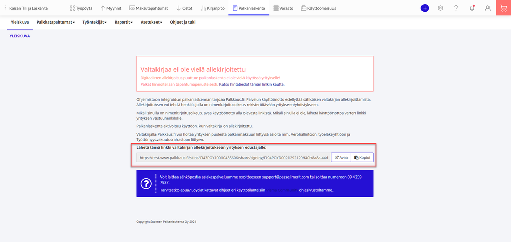 2. Siirry allekirjoittamaan valtakirja, tai kopioi linkki, ja lähetä se yrityksen nimenkirjoitusoikeudelliselle henkilölle allekirjoitettavaksi.