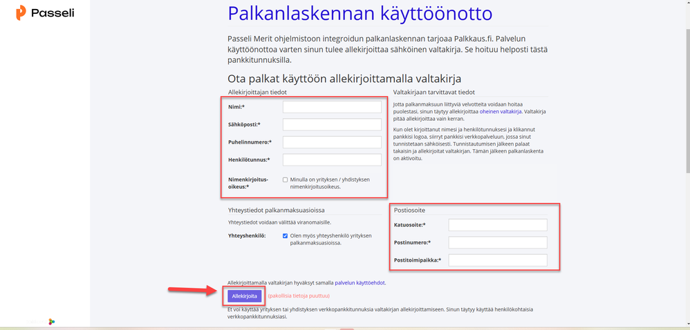 Täytä valtakirjaan kaikki tarvittavat tiedot, ja klikkaa Allekirjoita-painiketta: