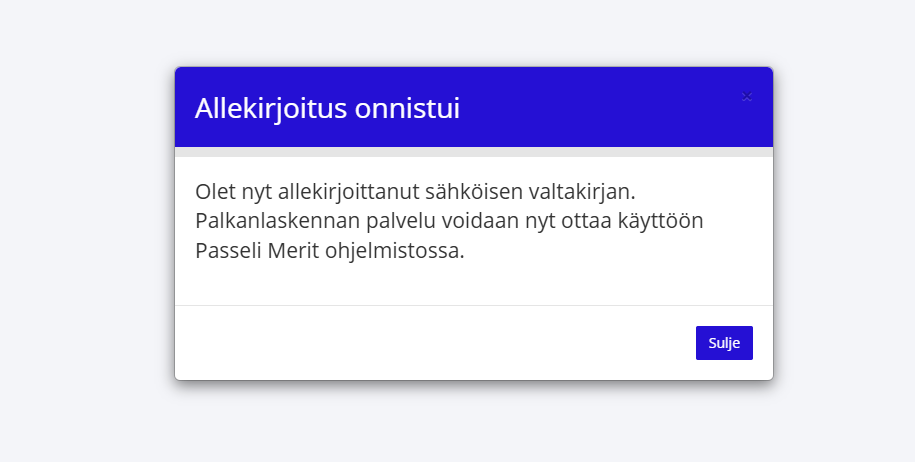 Passeli Meritiin on mahdollista integroida palkanlaskenta-osio. Integroidun palkanlaskennan tarjoaa Palkkaus.fi, josta voit lukea lisää täältä. Palkanlaskennan tiedot siirtyvät automaattisesti Passeli Meritin ja Palkkaus.fi-ohjelman välillä, kun integraatio on tehty. Huomioithan, että integraatio ei ole käytettävissä kokeiluversiossa.