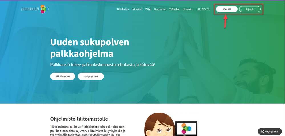4. Onnistuneen allekirjoituksen jälkeen siirrytään Palkkaus.fi:hin luomaan tili Uusi tili-painikkeesta.