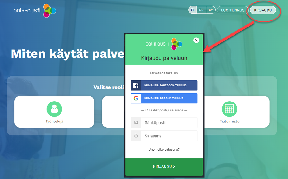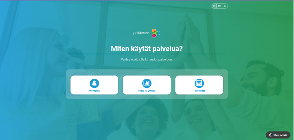Valitse rooli, jolla kirjaudut palveluun.