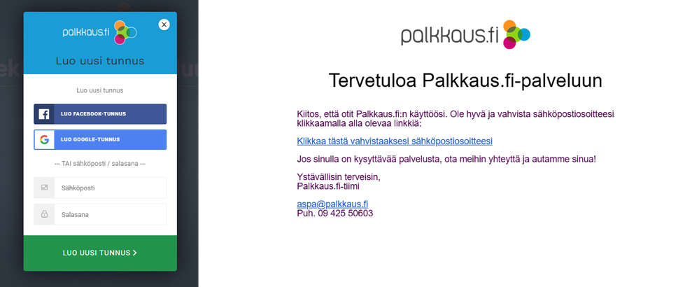 Luo uusi tunnus, ja vahvista sähköpostiosoitteesi sähköpostiisi saamastasi linkistä.