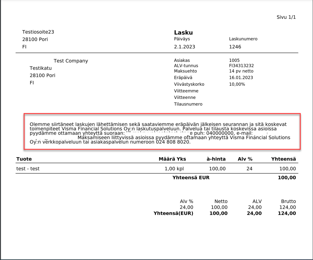 Veloitamme laskun lähetyksestä reskontravahtiin voimassaolevan hinnaston mukaisesti. Visma Amili voi veloittaa erikseen esimerkiksi toimeksiannon peruuttamisesta.
