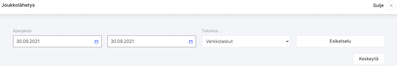 Ajanjakso - Syötä ajanjakso (alku- ja loppupäivä), jolta haluat lähettää laskut sähköpostitse tai verkkolaskuna tai tulostaa paperille.