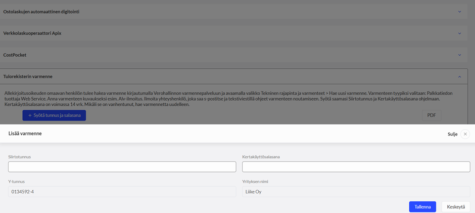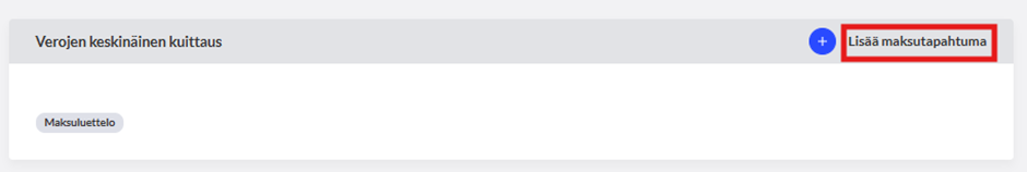 Jos haluat kirjata Verohallinnolle maksetun summan ennakkomaksuna, syötä se alla olevaan Ennakkomaksu-kenttään ja Tallenna.
