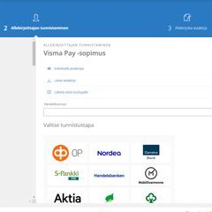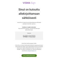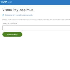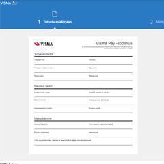 Olet tässä vaiheessa jo täyttänyt hakemuksen. Ihan mahtavaa. Olet saanut sähköpostilla linkin sopimuksen sähköiseen allekirjoittamiseen. Sähköposti on tullut lähettäjältä [email protected]. Mikäli yrityksessäsi sopimuksen allekirjoittajia on useampia, tulee kaikkien tehdä sähköinen allekirjoitus, jotta voit ottaa Visma Payn käyttöön omassa Verkkolaskut.fi-palvelussasi.