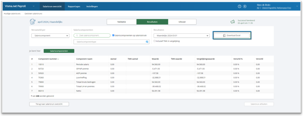 Vanaf nu is de Excel export functionaliteit ook beschikbaar in de Resultaten stap van de salarisrun wizard. Voorheen was deze alleen beschikbaar in de Validatie stap van de salarisrun wizard.