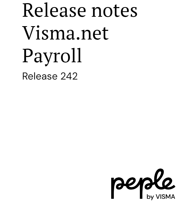 We willen je informeren dat Visma.net Payroll release 242 gepland staat voor dinsdagavond 16 april.