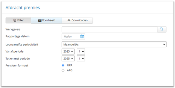 Wil je weten of er voor jouw keuze een automatische koppeling is voor de pensioenaangifte? Neem dan contact op met de afdeling Support.