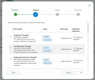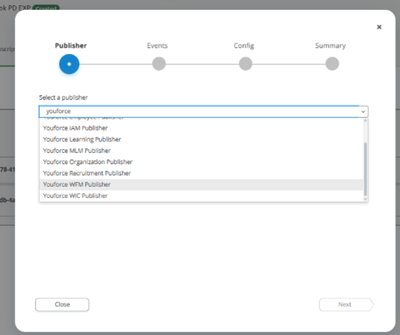 De webhook-functionaliteit is gekoppeld aan een Youforce domein API, denk aan IAM Learning, WorkForceManagement etc. Je maakt bij de configuratie, wat in dit artikel wordt toegelicht, een keuze van de soort(en) mutatie(s) waarvan je een bericht wilt ontvangen.