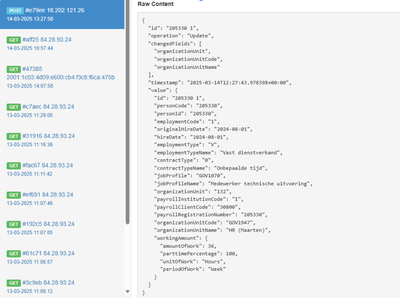 Een webhook-bericht wordt verstuurd na een gedane mutatie in Youforce. Deze mutaties kan je zelf niet invoeren, maak hiervoor een afspraak met de Raet consultant. De Raet consultant voert de gewenste mutaties in zodat je de berichten ontvangt. In overleg wordt in Youforce de data aangepast die leidt tot het gewenste webhook-bericht.