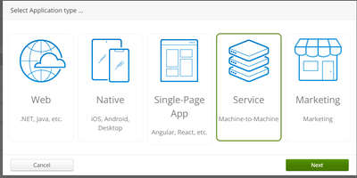 Als application type selecteer Service, dit is het enige type wat door Visma|Raet wordt ondersteund.