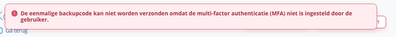De eenmalige backupcode kan niet worden verzonden omdat de multi-factor authenticator (MFA) niet is ingesteld door de gebruiker.