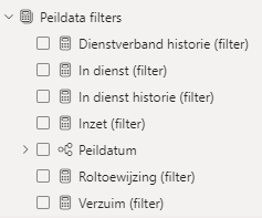 In het datamodel vind je nu een nieuwe entiteit, bovenaan “Peildata filters”: