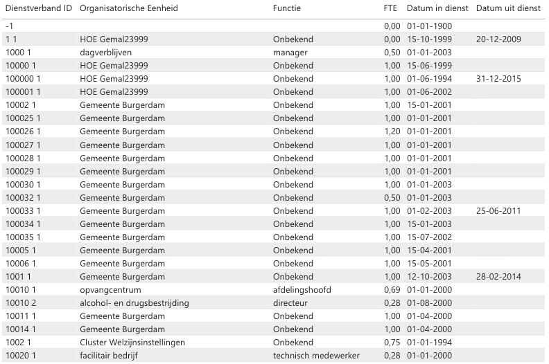 • In dienst (filter) : filteren van actieve dienstverbanden