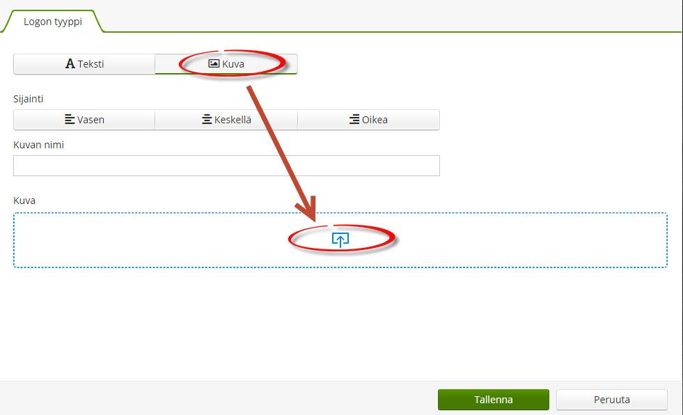 2) Valitse logon tyypiksi kuva ja vie hiiri nuolen päälle.