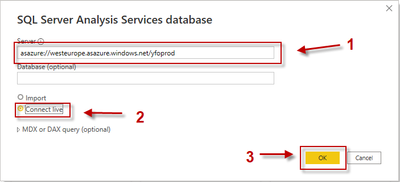 Iedere keer als je met PowerBI Desktop gaat werken, zul je een live verbinding moeten maken met de server en daarmee met het datamodel. Op die manier heb je altijd de meest recente versie van het datamodel. Op de volgende manier maak je verbinding: