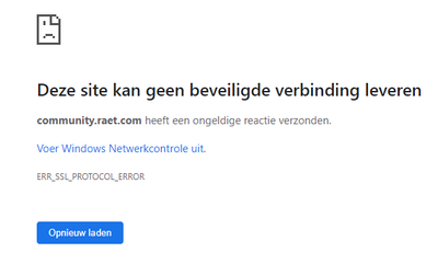 In een beperkt aantal gevallen kan je een foutmelding krijgen bij het klikken op een link in een publicatie in onze community. Afhankelijk van jouw browser kan de melding verschillen. Onderstaand voorbeeld is van Google Chrome.