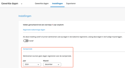 Om te voorkomen dat er maanden ingediend worden die niet (meer) verwerkt kunnen worden, gaan wij de "Startperiode" aanpassen naar december 2024.