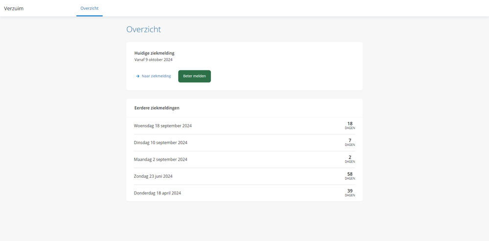 De vervolgstap voor ons is nu om via een apart recht de medewerker ook toestaan zichzelf ziek te melden. We hopen dit binnenkort ook beschikbaar te stellen.