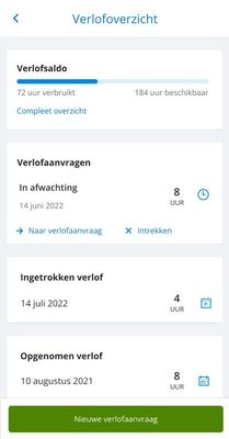 De manager laten we voor nu buiten beschouwing. We begrijpen dat er een noodzaak is voor managers (en HR medewerkers) om in te kunnen zien wat het openstaande saldo/recht is voor een bepaalde afdeling, persoon en dienstverband. We weten nog niet of we daar functionaliteit voor ontwikkelen of dat dit beter opgelost kan worden d.m.v. een rapportage.
