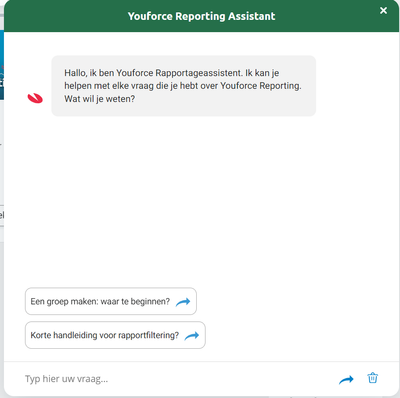Vanaf aanstaande maandag 16 september is de Youforce assistent in Reporting beschikbaar voor alle gebruikers van Reporting. Hiervoor hoef je niets te doen.