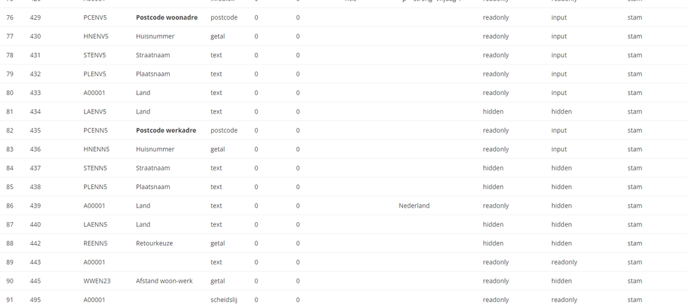 Die rubriek staat conform de rubriek op de weergave "postcode", waar dit praktischer is om de weergave "text" te hebben conform de rubrieken voor de andere reisdagen. Voor medewerkers die in het buitenland wonen zal de postcode woonadres niet voldoen aan het Nederlandse formaat wat hiermee wordt afgedwongen. Daarom adviseren wij jullie om dit zelf aan te passen in jullie formulieren, of het bijgewerkte formulier opnieuw uit onze 9999999 template omgeving te importeren.