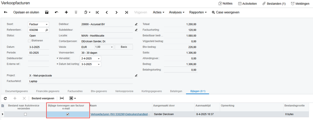 Een veelgehoorde wens is om extra bijlagen te kunnen meesturen met de e-mail van een factuur. Vanaf nu is dat mogelijk dankzij een extra optie in het tabblad Bijlagen in het venster Verkoopfacturen.