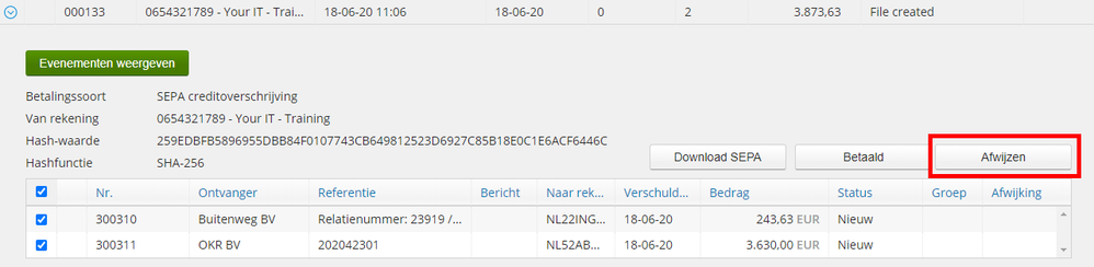 In Visma.net kon een betaling alleen als Betaald worden gemarkeerd. Wanneer echter onverhoopt de betaling niet uitgevoerd kon worden door de bank, was er geen eenvoudige terugdraai mogelijkheid. Met de nieuwe knop Afwijzen is dit nu mogelijk gemaakt...