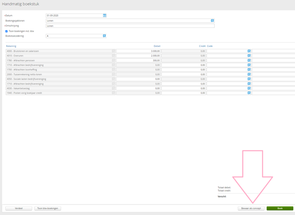 Het kan voorkomen dat je een boekstuk invoert maar dat je niet helemaal zeker weet welke bedragen of grootboekrekeningen je moet gebruiken. Voorheen moest je in dat geval de boeking afkappen om uit te zoeken hoe en wat. Vervolgens moest de boeking opnieuw worden aangemaakt. Dat is nu verleden tijd! Sla het boekstuk voortaan tussentijds op als concept en maak het later af.