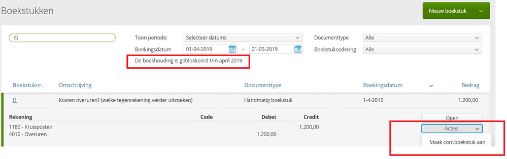 Heb je een periode in een voorgaand boekjaar geblokkeerd en wil je boekingen uit deze periode vervolgens handmatig corrigeren? Dan zal vanaf nu in de boeking automatisch de laatste dag van het jaar als datum worden voorgesteld. Dit is om te voorkomen dat boekstukken onbedoeld in het huidige jaar worden opgenomen. Uiteraard kan je de boekingsdatum nog steeds handmatig aanpassen wanneer een boekstuk geopend is.