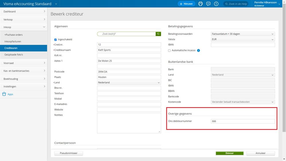Gebruik je de Visma eAccounting-module Voorraad? Voor jou bestaat dan nu de mogelijkheid om een apart debiteurnummer bij crediteuren te vermelden.