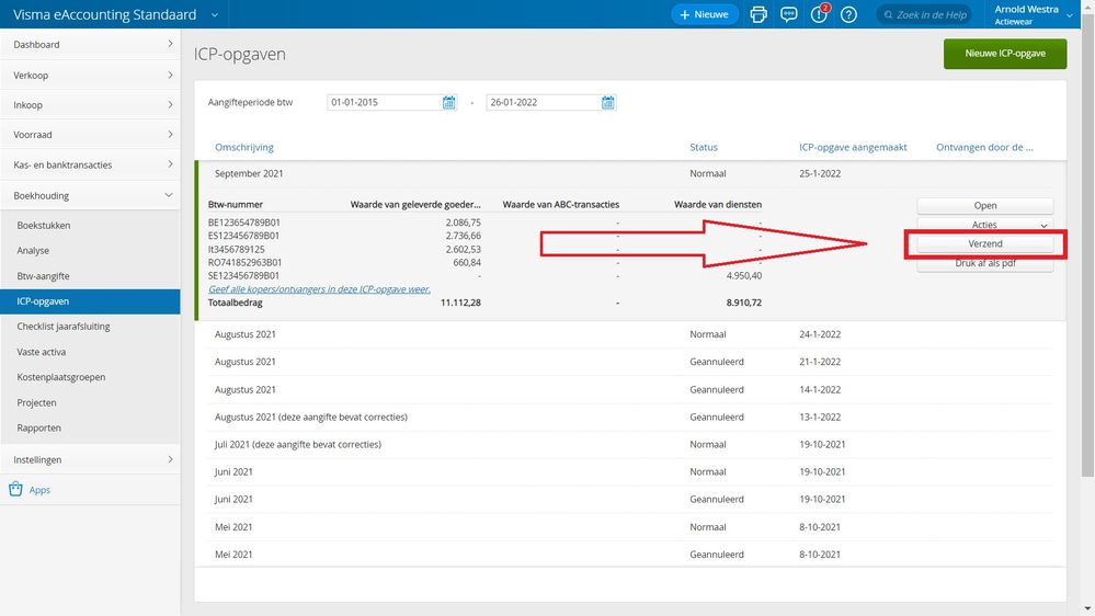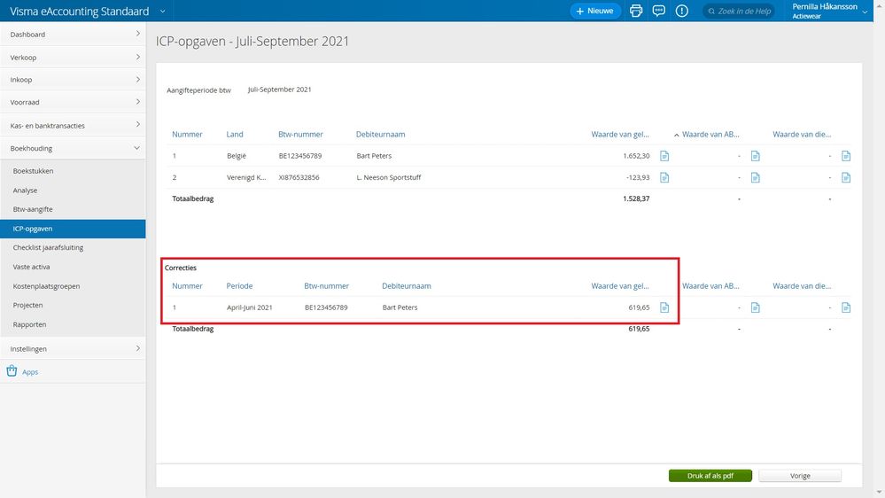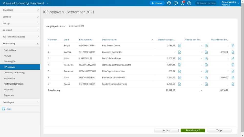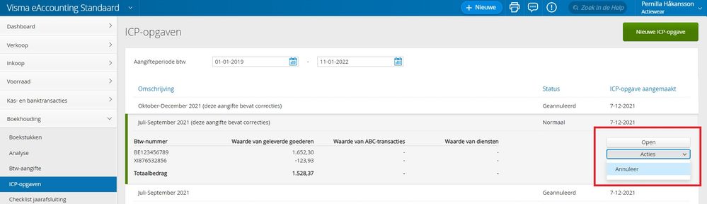 Wij hebben goed nieuws: vanaf nu is er nieuwe functionaliteit aan de ICP-opgave in Visma eAccounting toegevoegd. De ICP-opgave kan namelijk digitaal worden ingediend bij de Belastingdienst. Hiervoor is inloggen of het aanvragen van eHerkenning niet meer nodig. Met de vernieuwde ICP-opgave worden alle verkopen aan bedrijven binnen de EU overzichtelijk weergegeven in een lijst. Daarnaast hebben we ook de volgende verbeteringen toegevoegd: