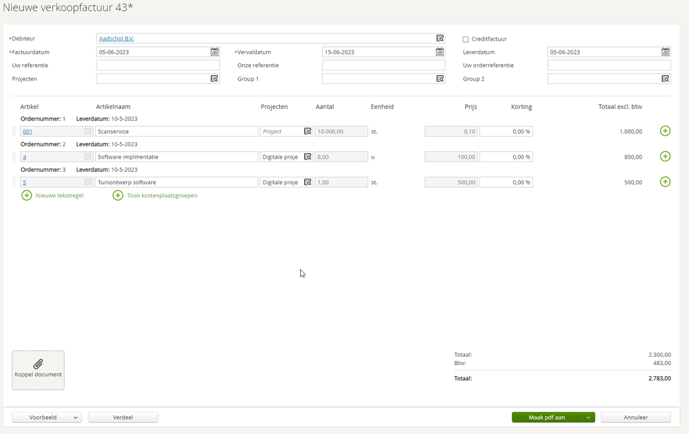 Let er op dat projecten, kostenplaatsen en referenties op orderniveau enkel overgenomen worden als deze gelijk zijn voor alle orders.