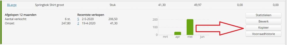In de lijst met artikelen en bij het artikel zelf kan nu gebruik worden gemaakt van de knop ‘kopieer’. Hiermee zal het programma alle waarden overnemen in een nieuw artikel. Handig als je bijvoorbeeld kleding verkoopt waarvan meerdere maten beschikbaar zijn.