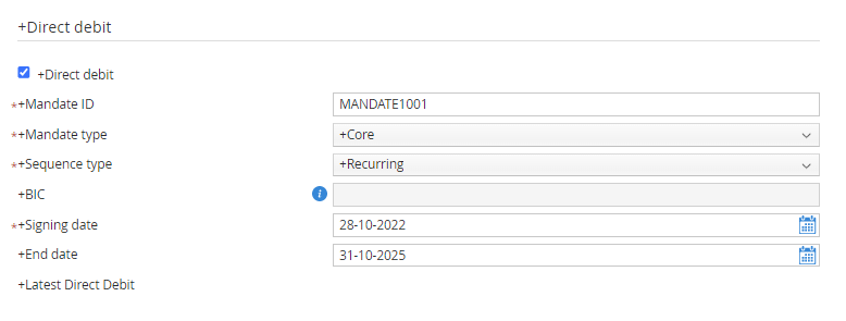 Zoals beloofd, een maandelijkse update van de voortgang van de Automatische Incasso module. De werkzaamheden bevinden zich nu op 60%. In het onderstaande screenshot zie je de velden om een machtiging te kunnen registreren bij de debiteur.