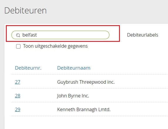 De zoekfunctie in de debiteurenlijst is uitgebreid. Er kan nu ook worden gezocht op postcode, plaatsnaam of straatnaam. Zo kan je bijvoorbeeld snel en eenvoudig al je relaties in een bepaalde stad terugvinden.
