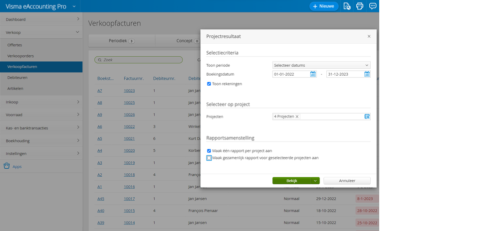 Wil je graag op projectniveau zien wat er per grootboekrekening is geboekt? Dat kan! Maak vanaf nu gebruik van het rapport Projectresultaat.