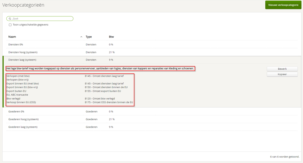 We hebben de weergave van verkoopcategorieën verbeterd. Je kunt nu de gebruikte rekeningen en een beschrijving direct zien wanneer je een rij uitvouwt. Dit bespaart tijd en helpt bij het kiezen van de juiste instellingen. Deze update is beschikbaar voor alle bedrijven en maakt het gemakkelijker om de juiste verkoop- en btw-categorie te selecteren.