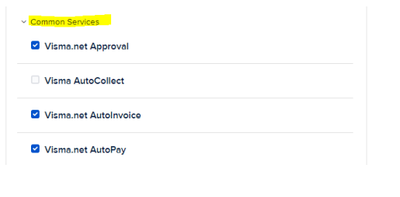 - Klicka på Common Services och markera tjänsterna Approval, Autoinvoice och Autopay
