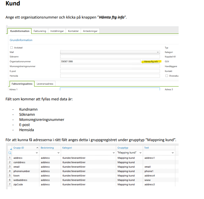 Kund och leverantörsuppgifter hämtas direkt från Inyett.