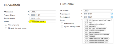 Har man t ex gjort urval på många poster, tex konton i en huvudbok, så kan man numera ställa sig i fältet för urvalet och trycka F12 för att visa alla valda poster överst i listan.