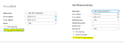 I några redovisningsrapproter, så kan man nu själv hantera sidbrytning som ett urval när rapporterna beställs.