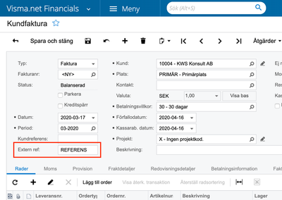 Fält för “Extern referens” har lagts till i fönstret Kundfaktura (SO303000) (ver 8.20) 23-03-2020 09:06 Svar 0 gilla 0 Visningar 1258 Visma Net